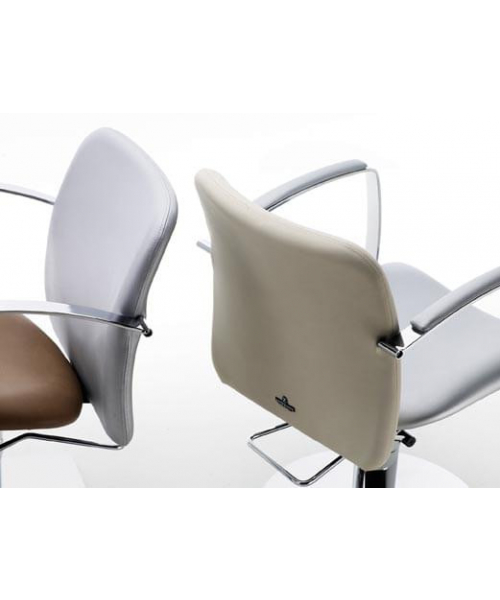 Кресло для клиента, выполнено из высококачественного поролона, каркас обтянут искусственной кожей, алюминиевые подлокотники полностью из металла или с декоративными накладками из кожезама. Комплектуется стационаром, гидроподъемником с основанием на пятилучье.