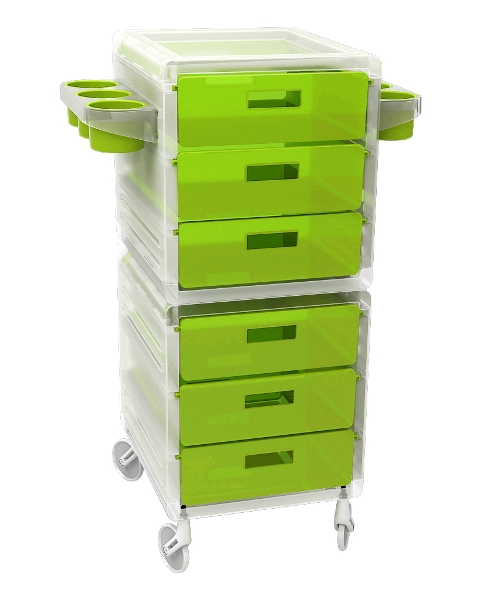Тележка парикмахерская "MY" - закрытого типа на бесшумных колесиках "NO HAIR". Тележка выполнена из прочного пластика. Тележка оснащена выдвижными ящиками и съемными боковыми полками.