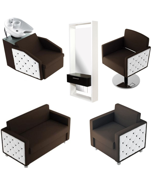 Классические прямоугольные формы в сочетании с необычными подлокотниками, выполненными в стиле "каретной стяжки", украсят зону ожидания вашего салона или офиса.