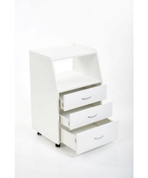 Тумба мастера "БЬЮТИ" - комплектуется тремя удобными ящиками и открытой полкой, что позволит мастеру без труда убирать необходимые инструменты.