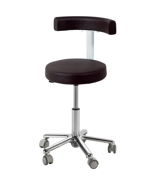 Стул мастера массажиста выполнен из высококачественного поролона, каркас обтянут искусственной кожей. Со спинкой или без спинки. Комплектуется пневматическим подъемником с хромированным или пластиковым пятилучьем, с опорой для ног или без опоры. Размер: 62х62х75-87