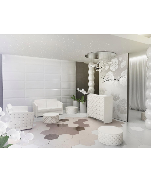 Парикмахерское кресло "Гламрок" с полкой состоит из большого зеркала и небольшой красивой полки, которая отделяет от нижней декоративной части. Цвет прошивки вы можете выбрать самостоятельно – в нашем интернет-магазине вы найдете огромный выбор разнообразных фактур, начиная с блестящей черной или белой экокожи и заканчивая обивкой под дерево.