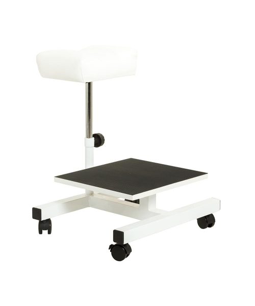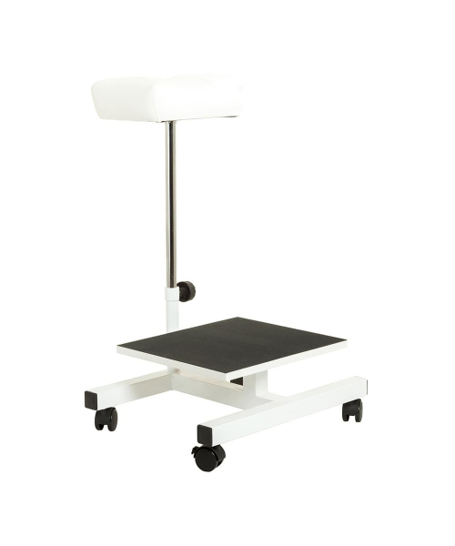 Удобная подставка для педикюра Бетта оснащена подставкой под ванночку и мягкой подставкой для ноги. Поверхность подставки под ванночку имеет резиновое покрытие для уменьшения скольжения мокрых предметов. Механически регулируется высота подставки под ногу. Вся конструкция легко передвигается по кабинету при помощи колес на основании.